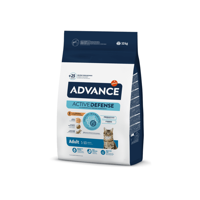 Advance Adult es una receta de alta calidad diseñada para satisfacer las necesidades nutricionales de los gatos adultos. Elaborado con pollo como ingrediente principal, este alimento no solo es delicioso y fácil de digerir, sino que también promueve la salud urinaria al mantener un pH equilibrado gracias a sus niveles óptimos de minerales. Además, cuida la piel y el pelaje de tu gato con la ayuda de ácidos grasos Omega 3 y Omega 6 y zinc. El tamaño de las croquetas está pensado para ajustarse perfectamente a la mandíbula de los gatos adultos.
