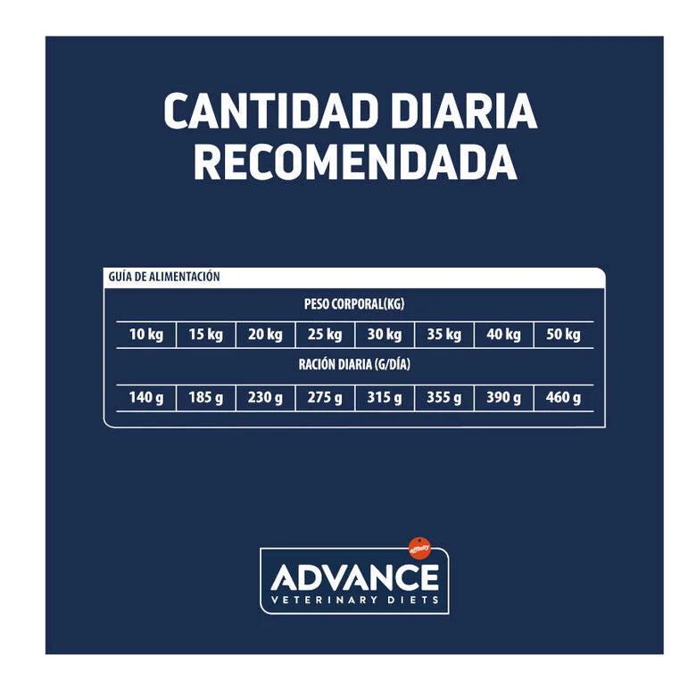 Este alimento de la línea Advance Veterinary Diets está formulado con ingredientes específicos para perros que padecen: