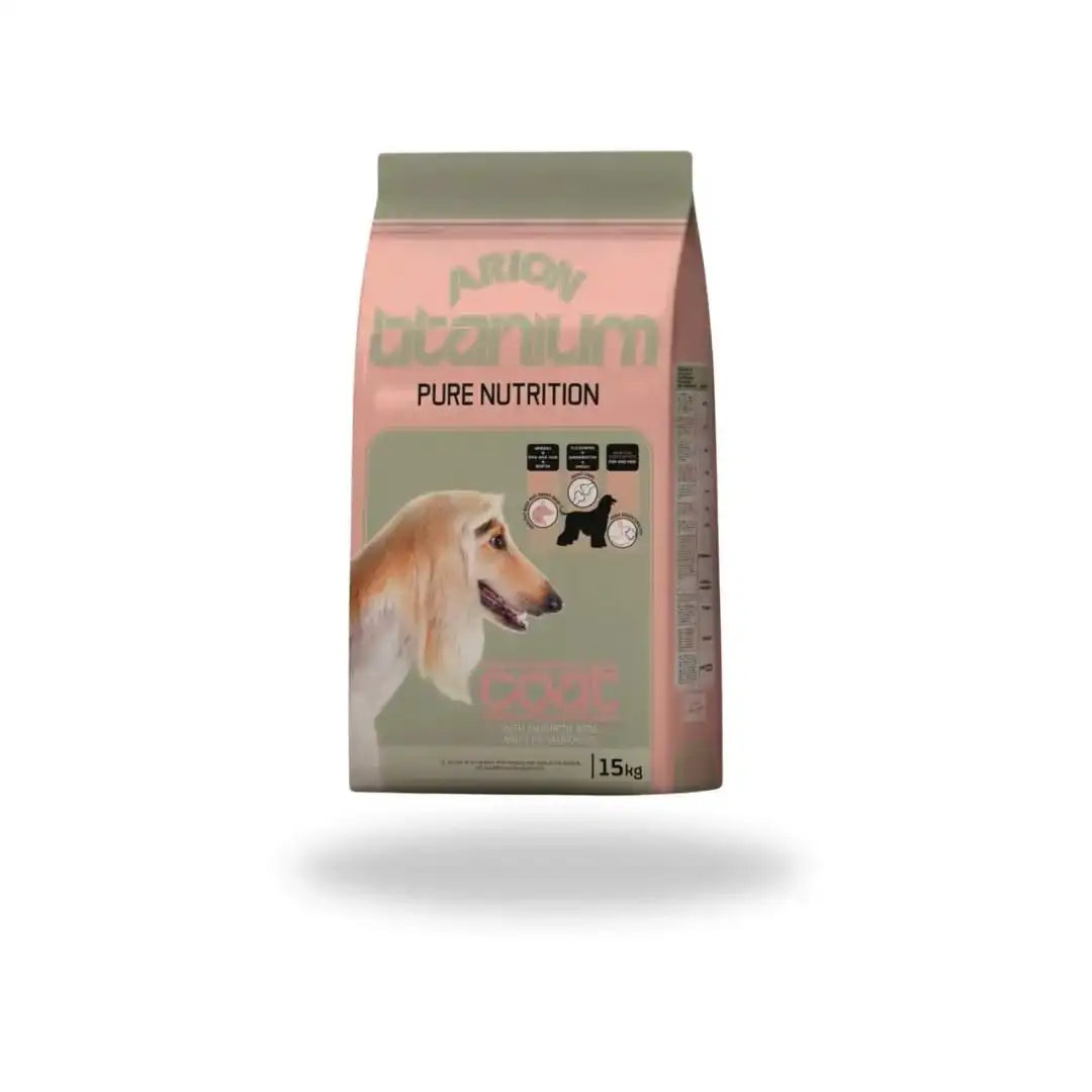 Arion Titanium Coat, elaborado con krill del Antártico y un 11 % de aceite de salmón, es un alimento completo y rico en omega-3 para mejorar la calidad del pelaje y mantener la piel saludable. Ideal para perros que necesitan un cuidado especial del pelo, especialmente aquellos que participan en concursos de belleza.