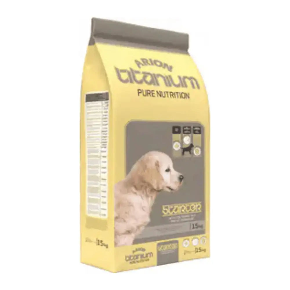 Con 25 % de pavo, arroz y 8 % de aceite de salmón, Arion Titanium Starter es un alimento completo para cachorros en su transición de la leche a la comida sólida. Formulado para equilibrar el déficit energético natural de la etapa post-destete, también es ideal para madres desde una semana antes del parto hasta el final de la lactancia.